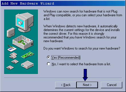 I recommend then you let Windows search for your hardware. Just select next and this will apear.
